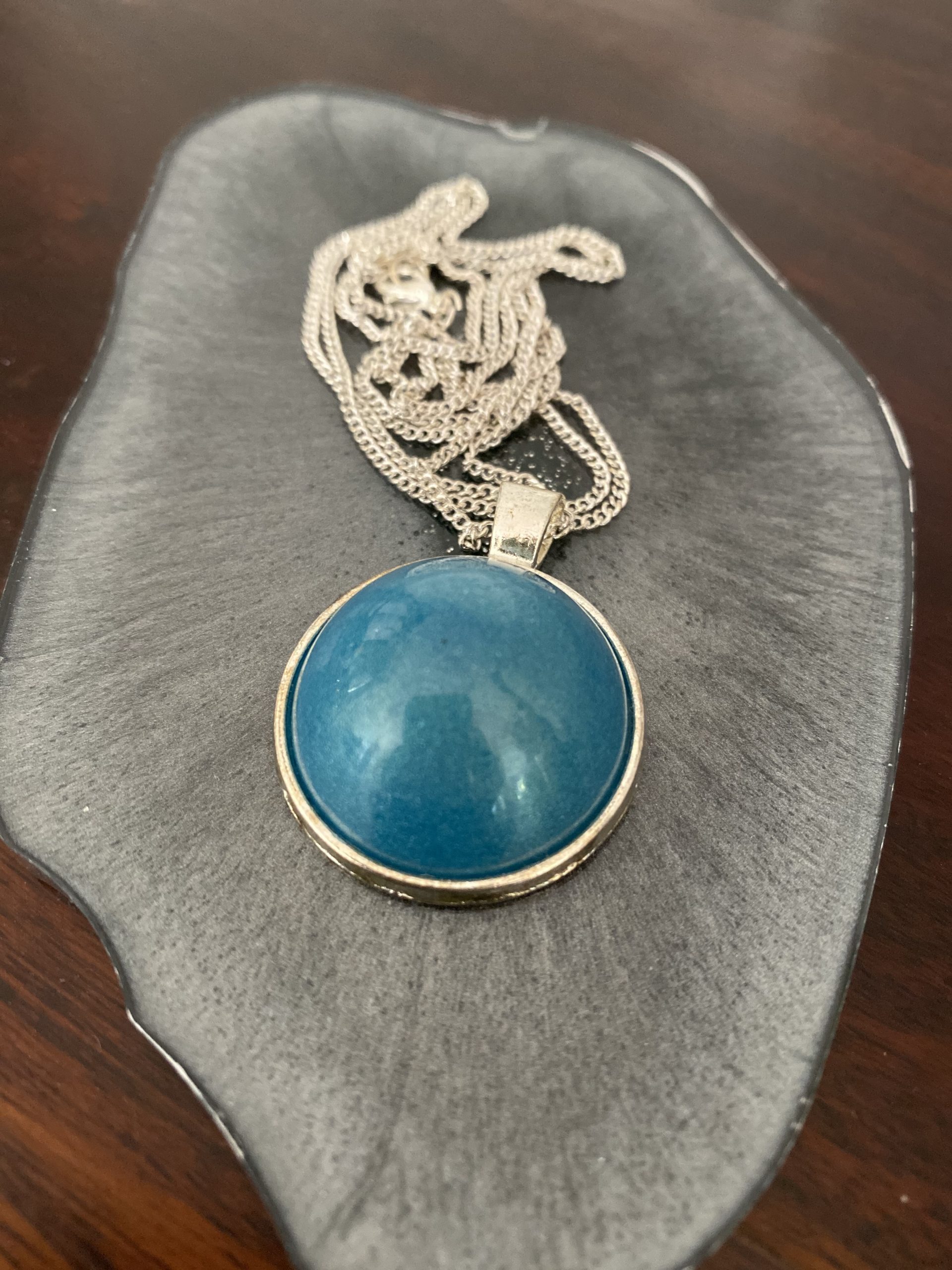 Dieser wunderschöne türkisfarbene Kettenanhänger wirkt durch seinen schlicht gehaltenen Look sehr edel.