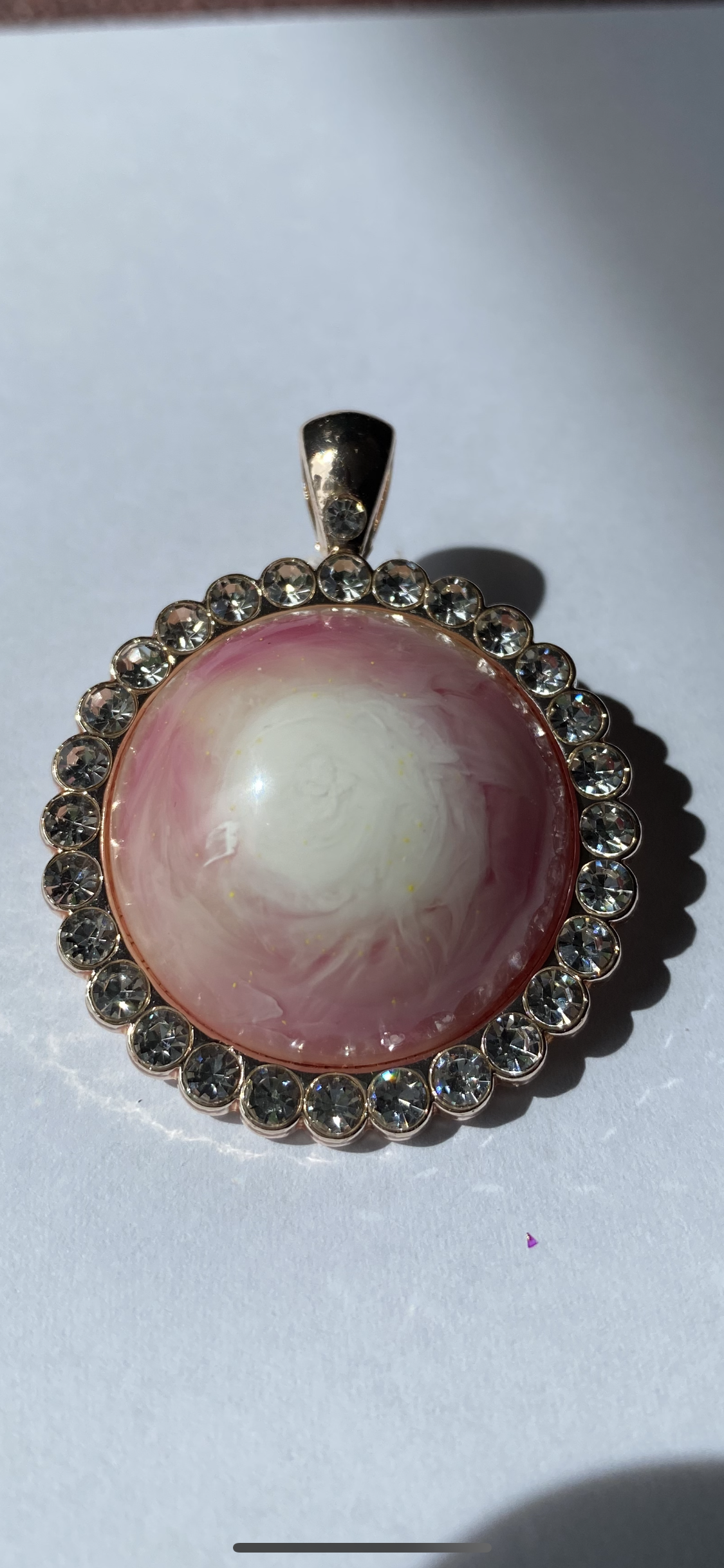 Dieser hübsche rose‘-marmorierte Kettenanhänger wirkt besonders edel durch seine Strasseinfassung in Rose’gold.