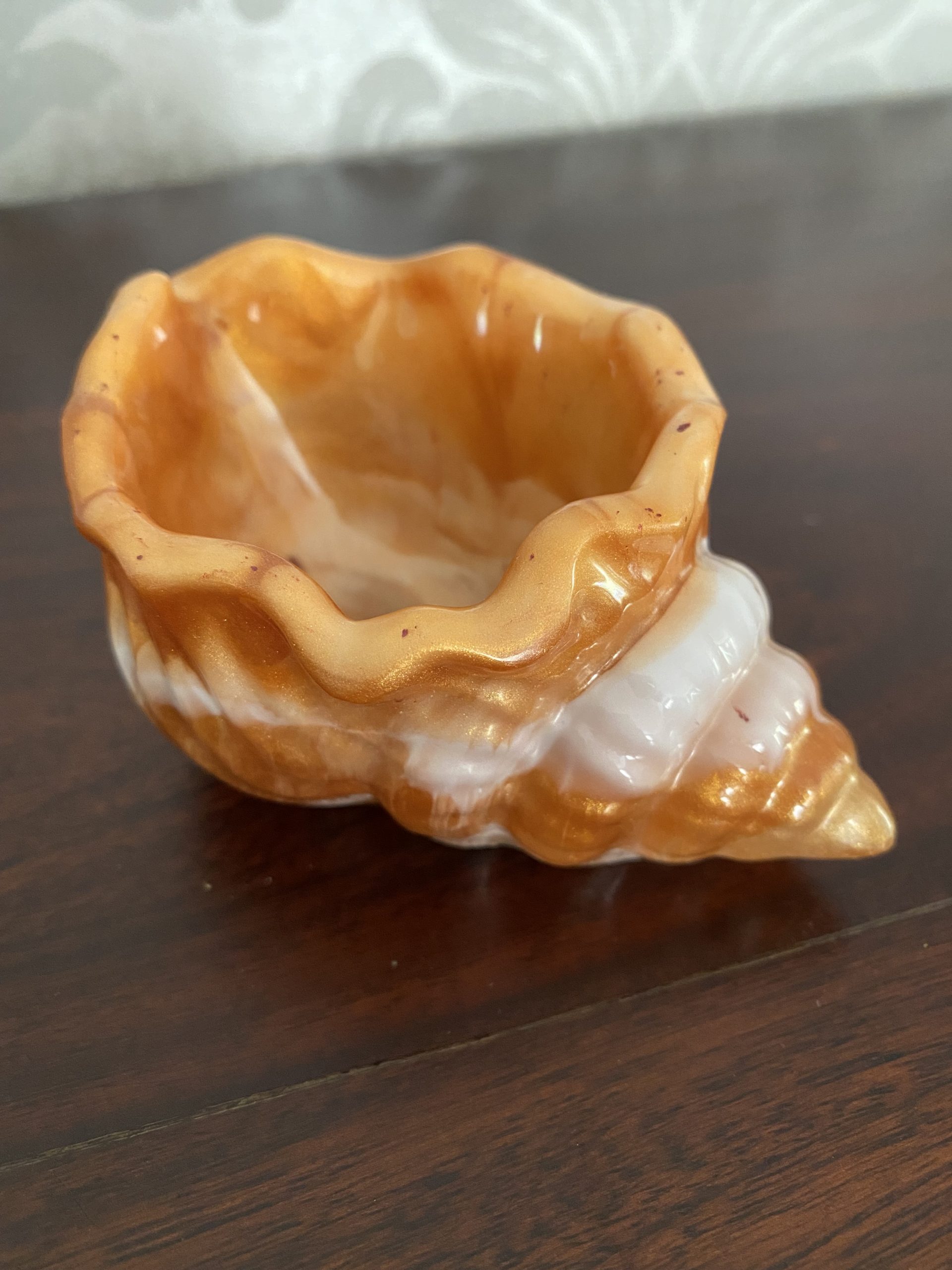 Das Glitzern der Silberkugel und die Reflektionen, die sich in der hochglänzenden Oberfläche der Blüte widerspiegeln, verleihen dieser Kreation einen ganz besonderen Charm.